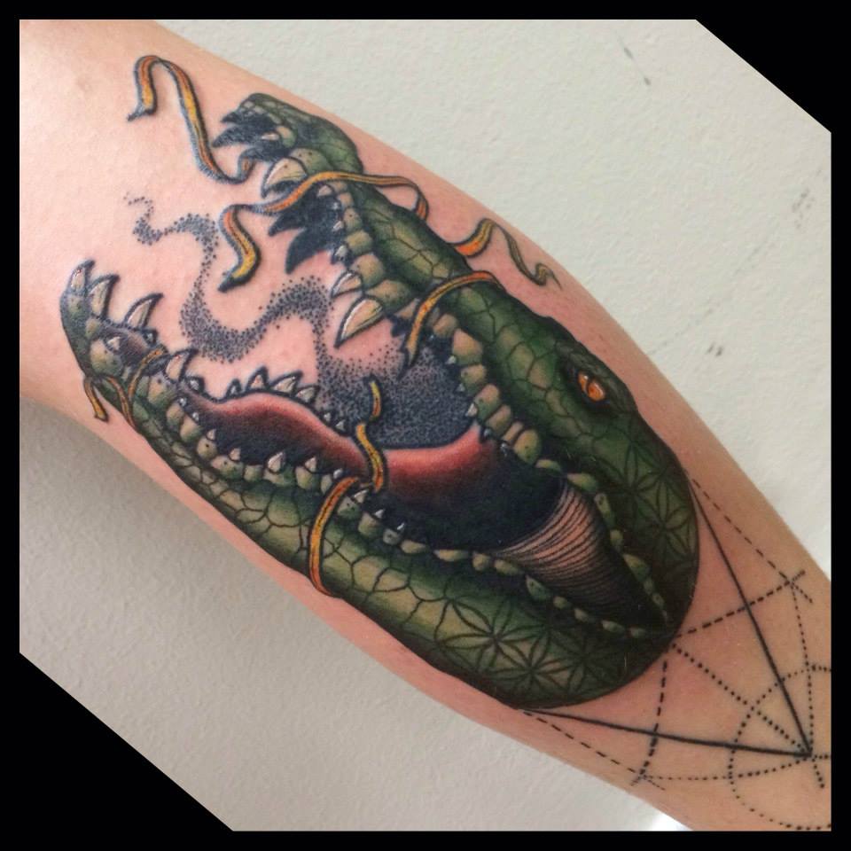neo traditional crocodile color tattoo
